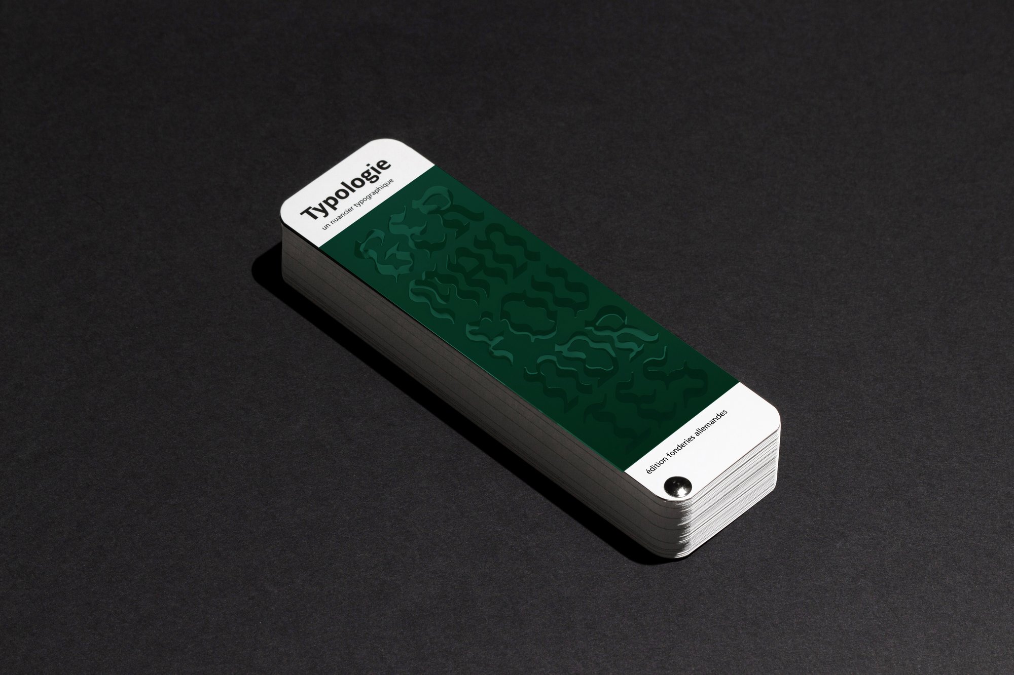 Conçu par le studio parisien Recto Verso, Typologie Vert est un outil de référence pour les professionnels du graphisme, de la typographie et de l’édition. Présenté sous la forme d’un nuancier graphique au format unique (60 x 200 mm), il propose une immersion dans les pratiques contemporaines du design de caractères en Allemagne, pays reconnu pour son héritage et sa créativité typographique.